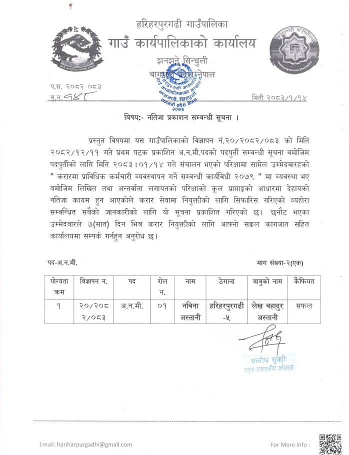अ.न.मी. पदको अन्तिम नतिजा प्रकाशन सम्वन्धमा।
