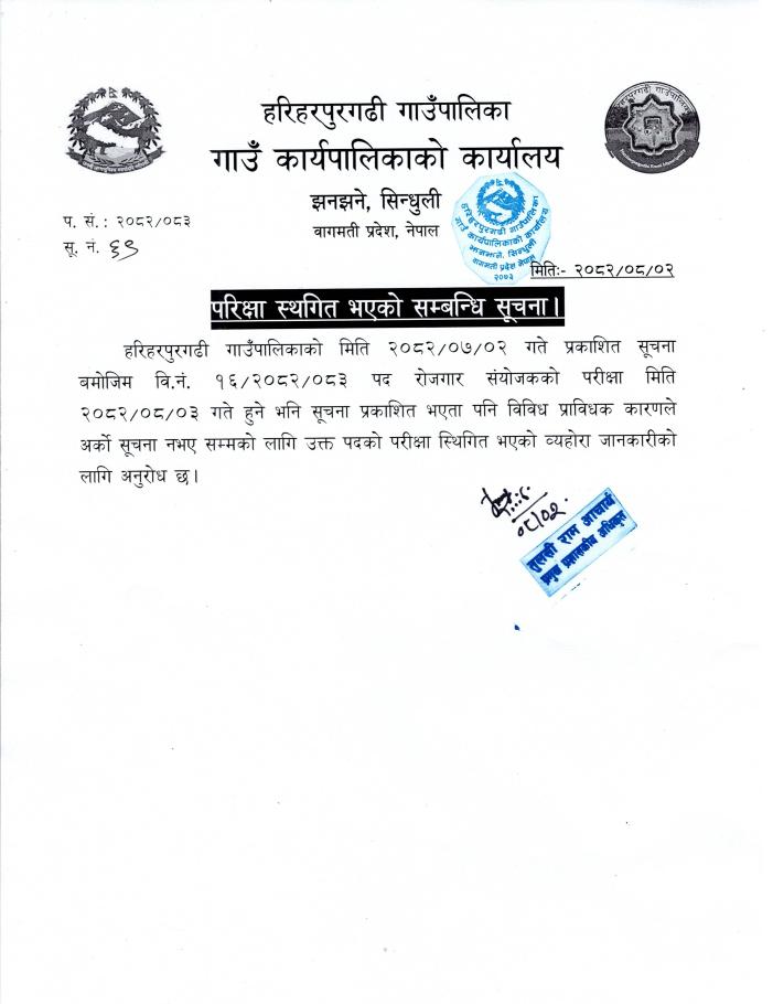परिक्षा स्थगित सम्वन्धि सूचना।