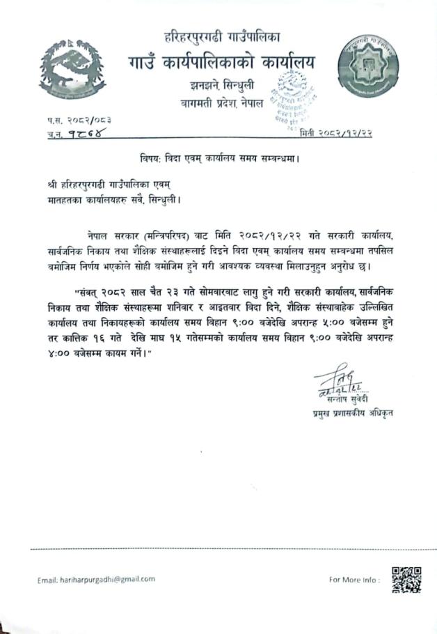 विदा एवम् कार्यालय समय सम्बन्धमा।