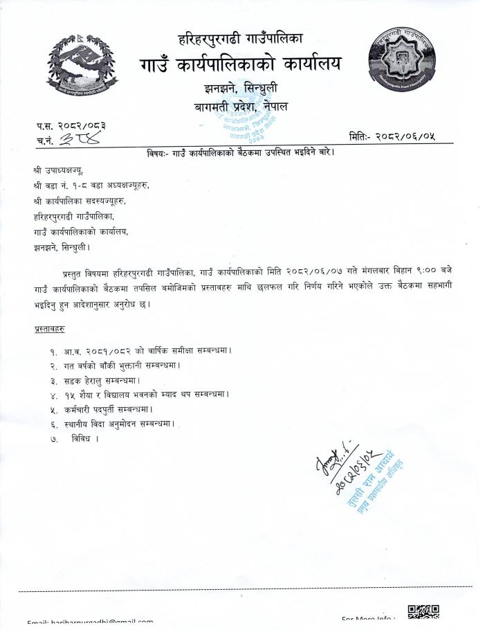 कार्यापालिका बैठकमा उपस्थित भईदिन हुन।