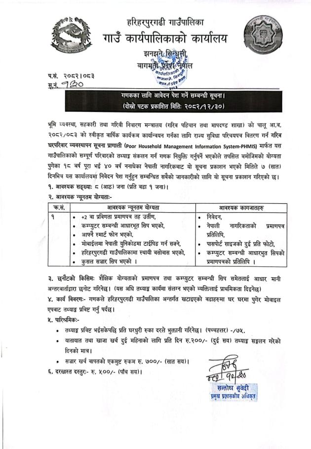 गणकको आवेदन पेश गर्ने सम्वन्धी सूचना।