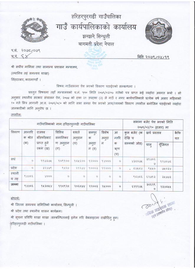 गाउँसभामा पेश भएको आ.व.२०७९/०८०को  वजेटको विवरण