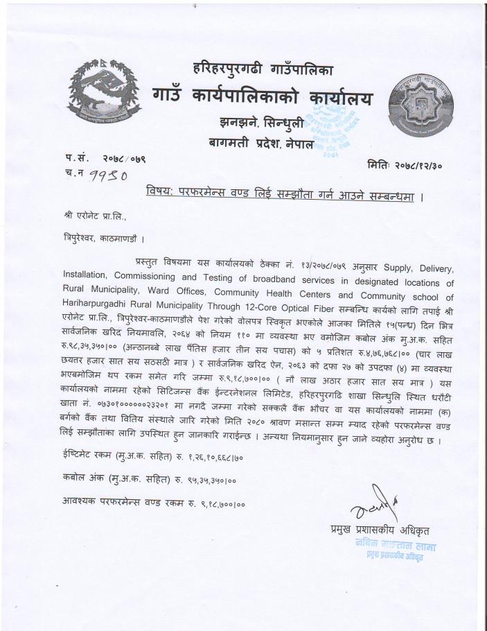 परफरमेन्स वन्ड लिई सम्झौता गर्न आउने सम्वन्धमा ।