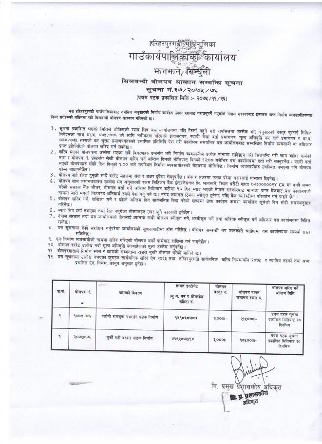 सिलबन्दि दरभाउपत्र आब्हानको सूचना