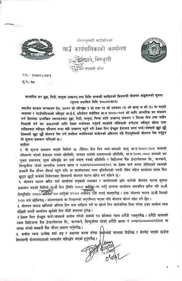 सिलवन्दी बोलपत्र आव्हानको सूचना ।